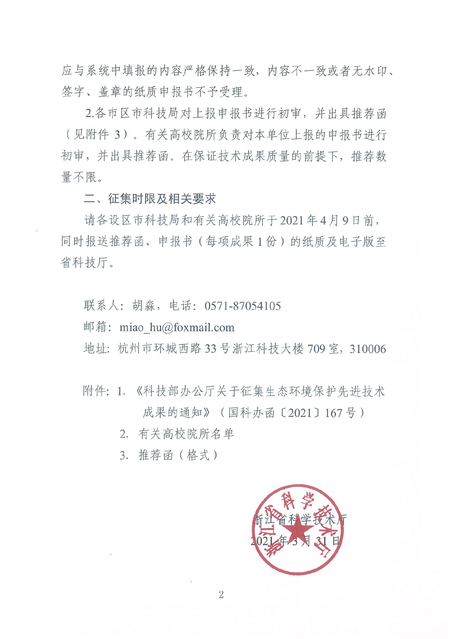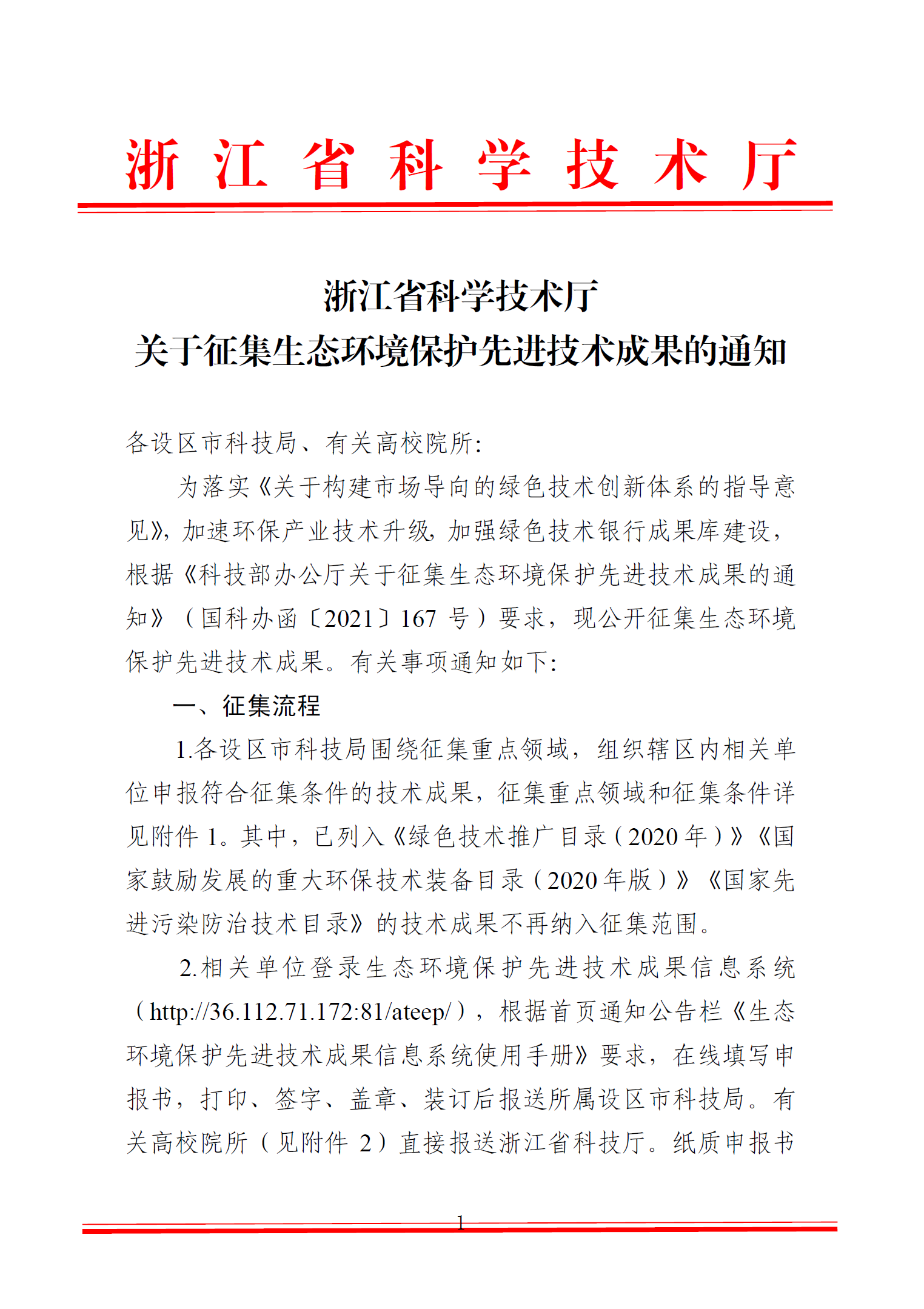 请负责人于4月8日前按照通知要求上报科技处,谢谢!科研院联系人:朱恩泽,86843648,enze@cryspvip.com; 周艺艺,86843695,1124589352@qq.com科技部办公厅关于征集生态环境保护先进技术成果的通知征集重点领域生态环境保护先进技术成果申报书(格式)