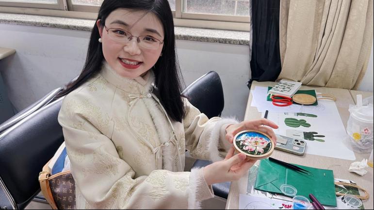 在听完指导要领后,老师们开始纷纷各自构图、掐丝、调色、上沙、固胶……如同雕琢艺术品一般,每个人都认真装饰着自己手里的作品,经过一道道工序,一件件“私人订制”的掐丝珐琅杯垫惊艳出炉。作为非遗,掐丝珐琅不仅是工艺也是艺术,流光溢彩,雍容华贵,展现真正的东方美学。