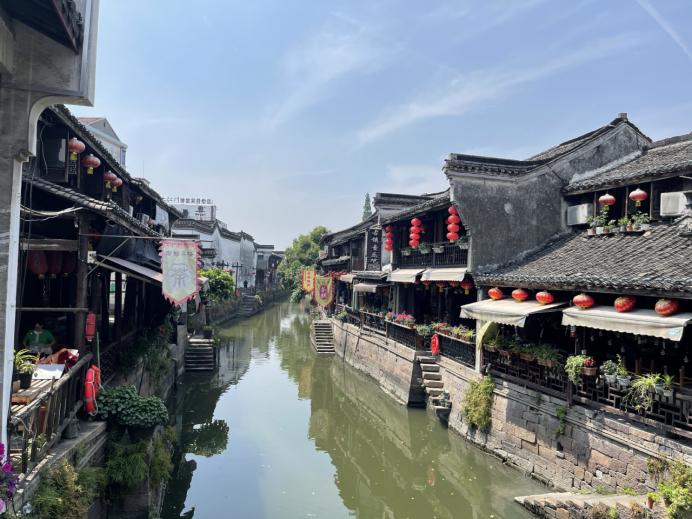早上一路欢声笑语一行到达新市古镇景区。古镇有数千年历史,砖雕门楼,飞檐翘角,临河而建,傍桥而市,有着典型的江南风情。相较于其他古镇的繁华、熙攘,新市古镇显得更加娴静、明朗。大家三两成行,沿河观赏,不时驻足拍照留影,享受这难得的清闲。