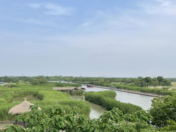 下午,一行驱车去德清下渚湖湿地公园,公园里隐伏着各种岛屿台墩,沼泽、河汊、草滩相连。老师们首先乘船登陆其中一座岛屿“乐岛”,大家参观了鸟类“大熊猫”朱鹮保护地以及生态标本馆,感受岛上野鸟群息,春花烂漫。其后,一行再次乘船登上另一座岛屿“蒹葭岛”,正如其名,整个岛上芦苇荡漾、伸手可触,犹如“水上迷宫”。漫步于下渚湖湿地间,犹如置身于世外桃源。