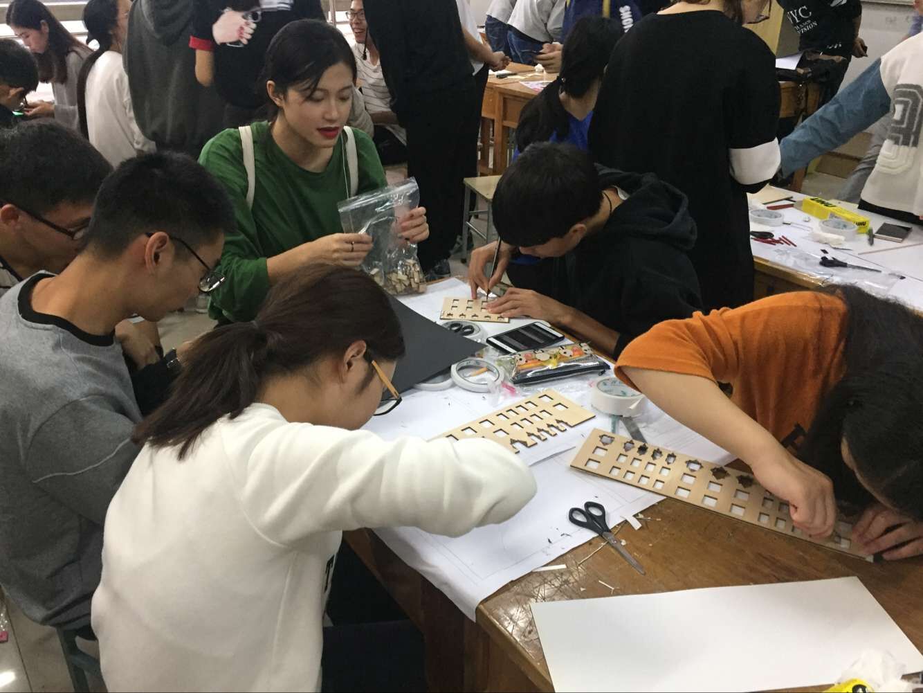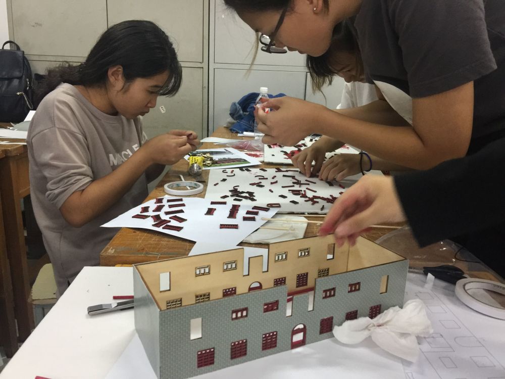的党员学子用双手搭建着一个个会址模型。模型制作过程是繁复与不易的,从前期的资料查找、建模排版,到雕刻出大致轮廓、再用砂纸打磨光滑平整。为了最大程度地还原会址,成员们对外墙贴纸精挑细选,需要手绘上色的部分均是一次次调色试色,确保色彩与原建筑的整体匹配。功夫不负有心人,一个个会址模型精巧美观、栩栩如生。