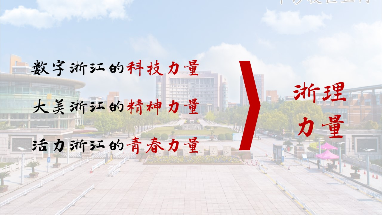在浙江省“两个先行”新征程上,在二十大精神开局之年,我校展现浙理力量,扛起浙江担当,作为新时代浙理人,我们自当奋勇争先。砥砺前行。