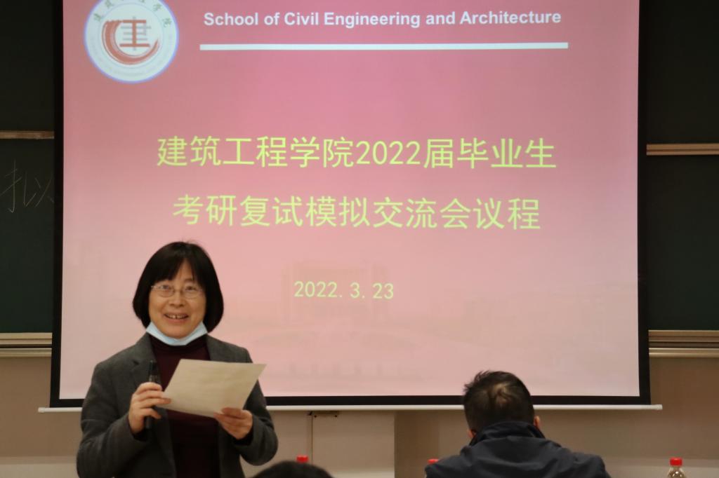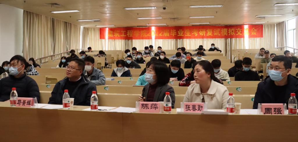 在2N219举办了2022届毕业生考研复试模拟交流会。担任复试模拟会评委老师的有土木工程系专任教师陈萍、建环系专任教师马景辉、工程管理系专任教师张春勤、建筑系专任教师周强、风景园林系专任教师胡立辉,成人影视