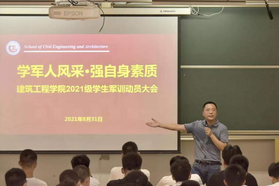 2021级学生军训动员大会在2N223和2N217进行,党委副书记李孝明为本次动员大会的主讲人。21级新生齐聚一堂,即将开始为期十余天的军训生活
