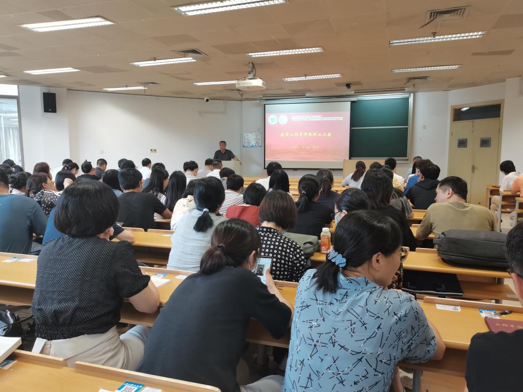 在2N124召开新学期第一次教职工大会。会议由学院院长杨杨主持。