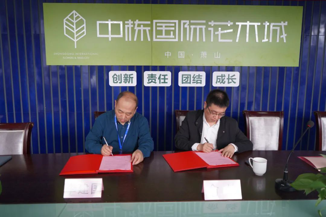 与浙江中栋花木城有限公司在萧山中栋国际花木城隆重举行战略合作与共建研究生联合培养基地签约及授牌仪式。