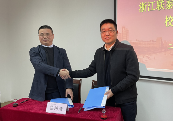 在全体参会人员见证下,双方举行了校企合作签约仪式,学院和联泰公司将在建筑领域双碳研究、就业实习基地建设、订单培养与合作办学、实习与实训基地建设、互派挂职交流等方面进行深入合作。