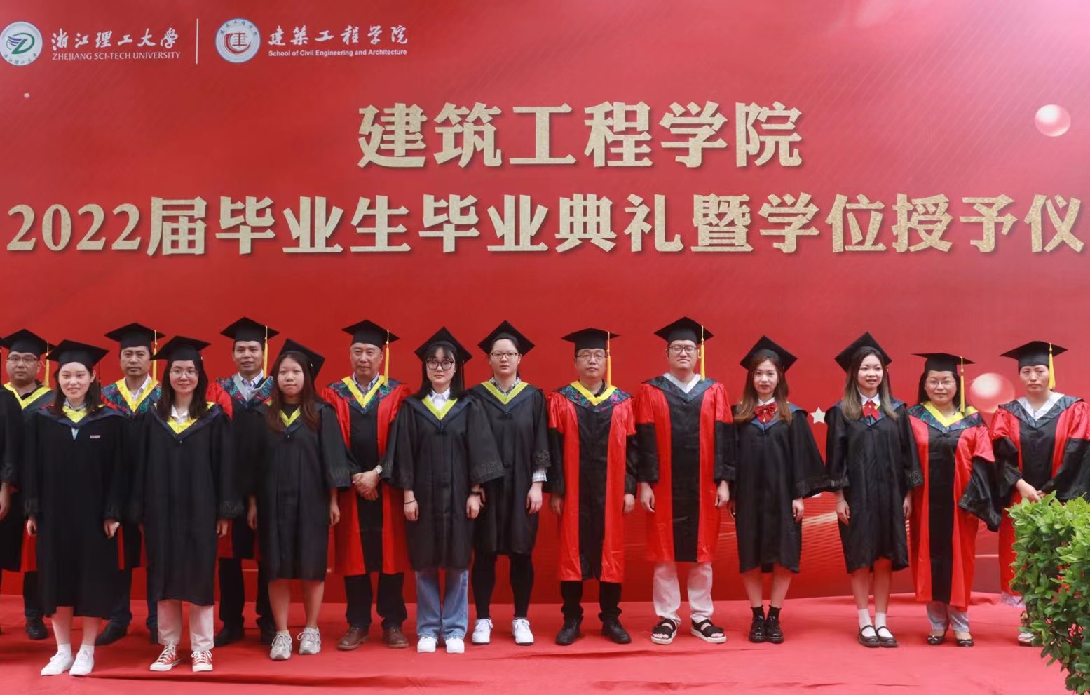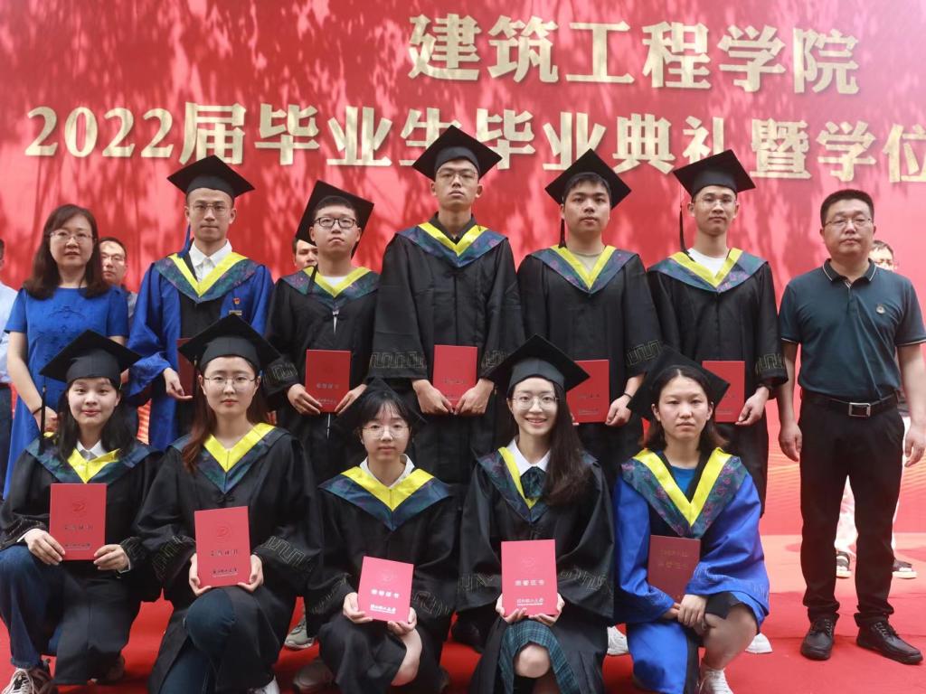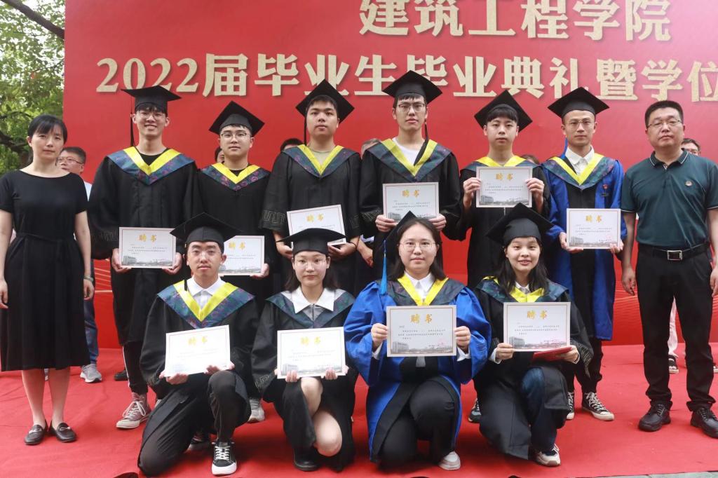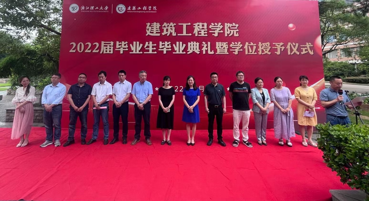 2022届学生毕业典礼暨学位授予仪式在7号楼西侧举行。校对外联络办公室(校友办)主任陈艳、学院党委书记李娜、院长杨杨、执行院长俞峰、副院长刘勇、杨博,各系教师代表、班主任代表等出席典礼。毕业典礼由学院党委副书记李孝明主持。