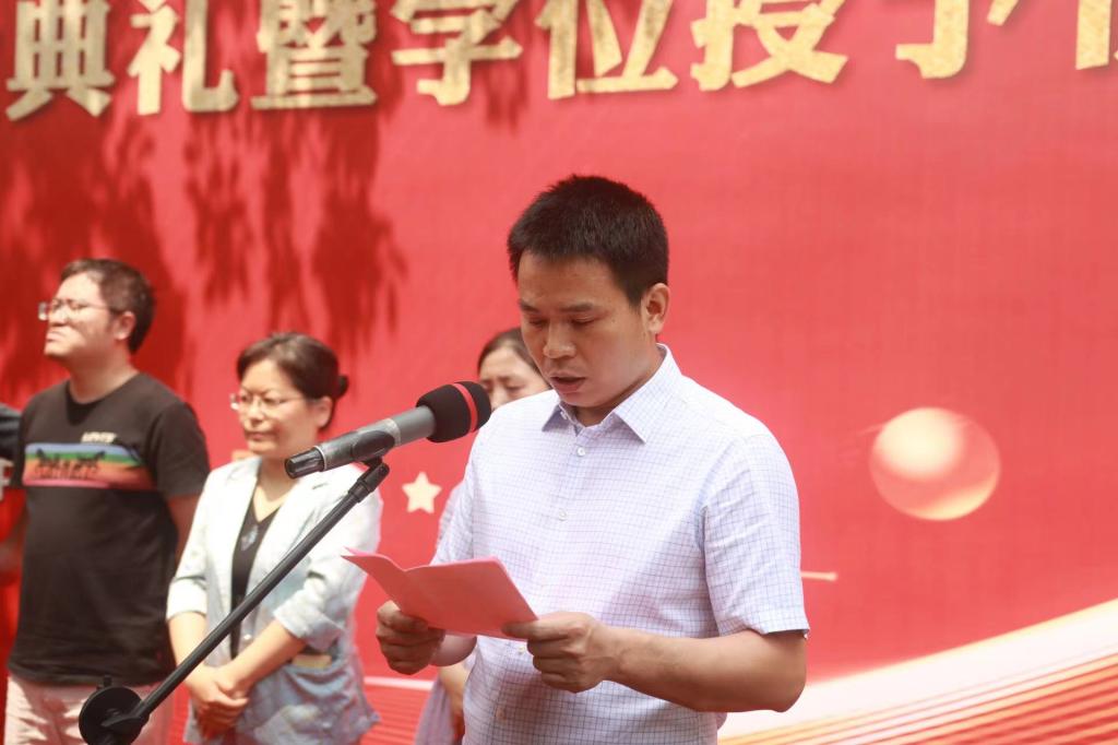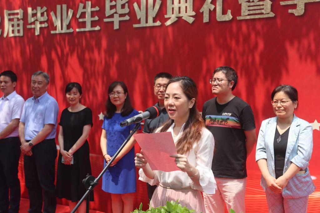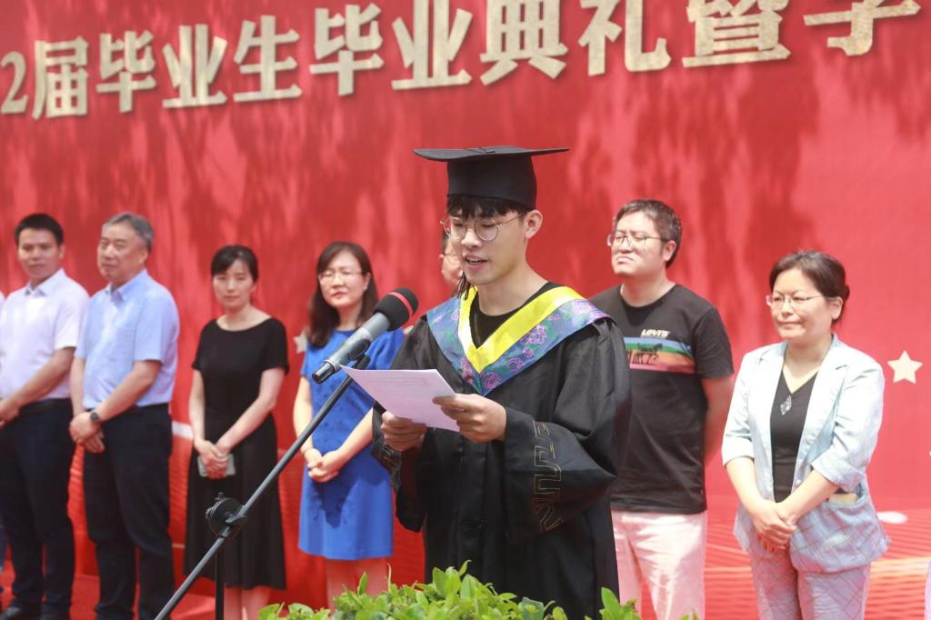 毕业典礼在庄严的国歌声中拉开序幕。杨博宣读2022届毕业生及获得学位学生名单,刘勇宣读省(校)级优秀毕业生毕业生名单。李娜、俞峰为省(校)级优秀毕业生颁发荣誉证书。陈艳、俞峰为2022届毕业生年级校友联络会理事代表颁发聘书。
