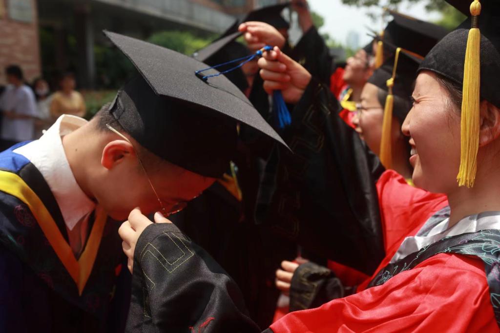 因疫情防控需要,本届毕业典礼在户外举行,现场简约而热烈。