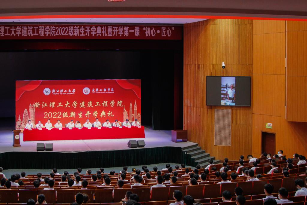 在现场,大屏幕上播放了新生家长寄语,迈入了浙理建工学院,背负起家人的期许,此刻真正驶向新的远方。