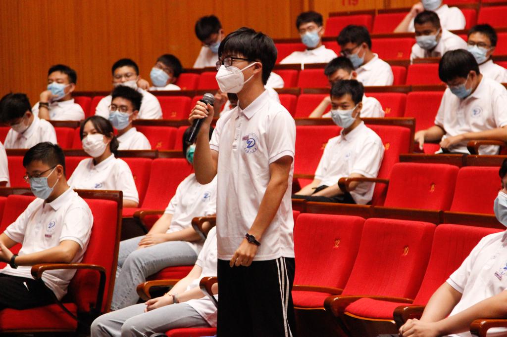 ,介绍了学院行业发展的前景和专业发展的方向,告诫同学们成才先成人,要脚踏实地,实事求是地走在求学之路上,以朝气蓬勃的状态迈入人生的新一阶段;时刻牢记底线思维,抓住时间,奋发努力,不给人生道路留下太大的遗憾;发挥主观能动性,把握自己的学习方向,不断进取拼搏。尾声将至,俞院长回答了新生们的一些困惑并衷心祝愿每一位新生在“浙理”遇见更好的自己,培养匠心,牢记院训,做一名新时代的大学学子。