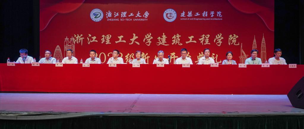 2022级新生开学典礼暨开学第一课在国际会展中心举行。学院党委书记李娜,院长杨杨,执行院长俞峰,2008届建筑学专业校友、绍兴市越城区城市发展建设集团有限公司副董事长兼总经理陈冲,副院长刘勇、杨博,党委副书记郑磊,以及各系主任等出席开学典礼并在主席台就坐。2022级新生班主任、辅导员以及2022级全体新生参加了开学典礼。典礼由郑磊主持。