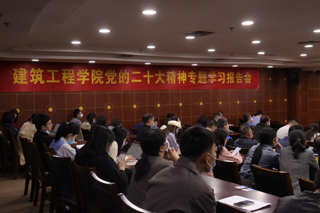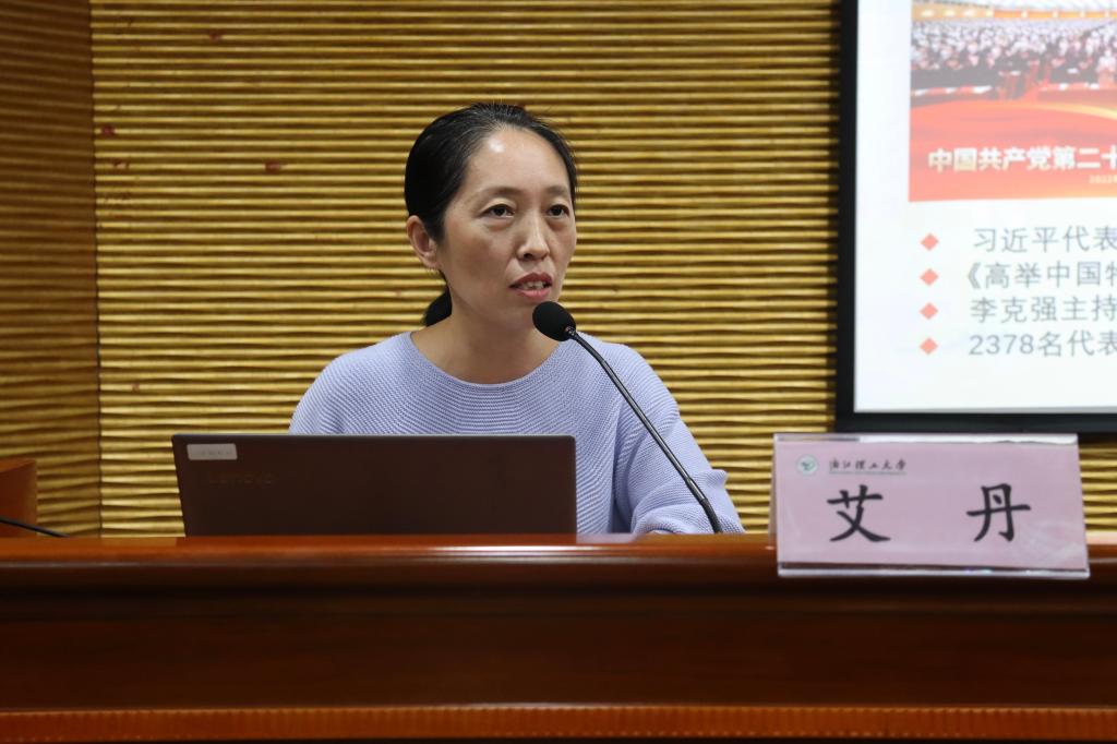 党委于11月2日下午在行政楼一楼报告厅举办了“学习贯彻党的二十大精神”专题学习会。马克思主义学院副教授、全国样板党支部书记艾丹主讲,学院全体教职工参加会议。会议由学院党委书记李娜主持。