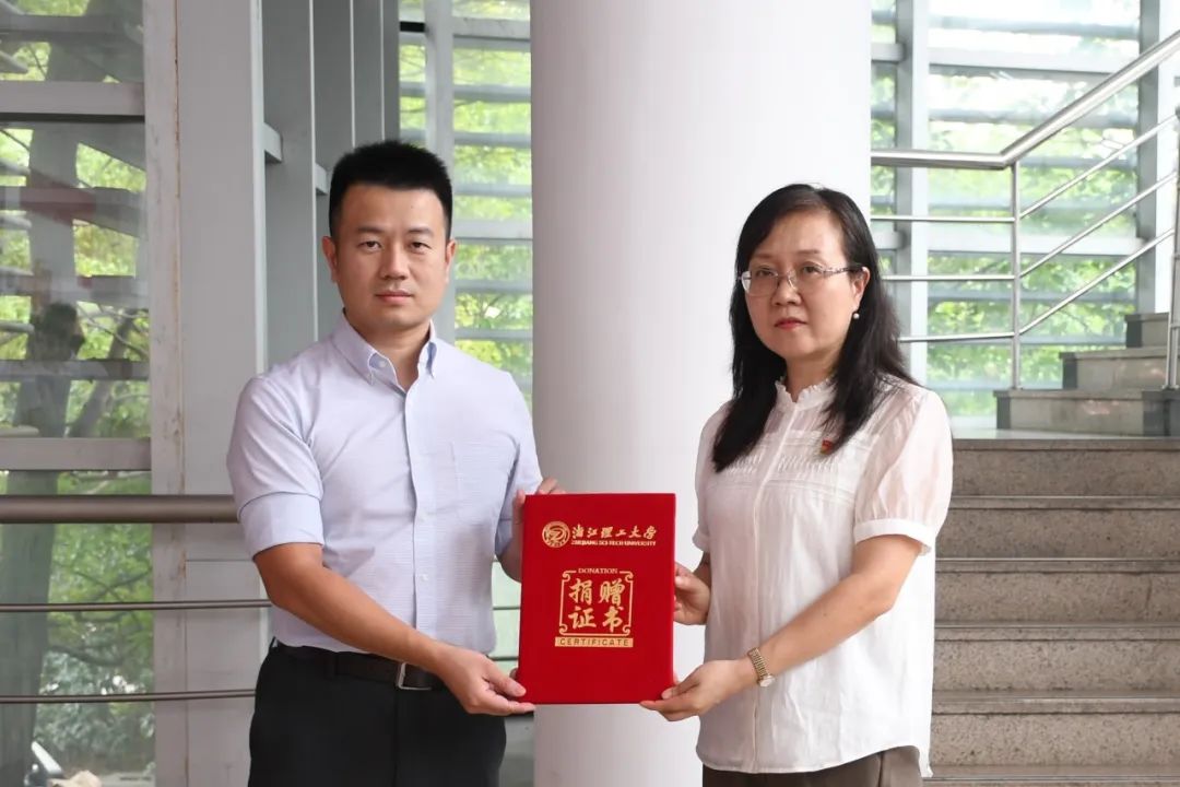 设立花卉学课程建设专项基金,用于支持花卉学课程开展课程思政教改探索等内容。斯浙柯向李娜递交捐赠支票。李娜为浙江中枢能源管理有限公司颁发捐赠证书。
