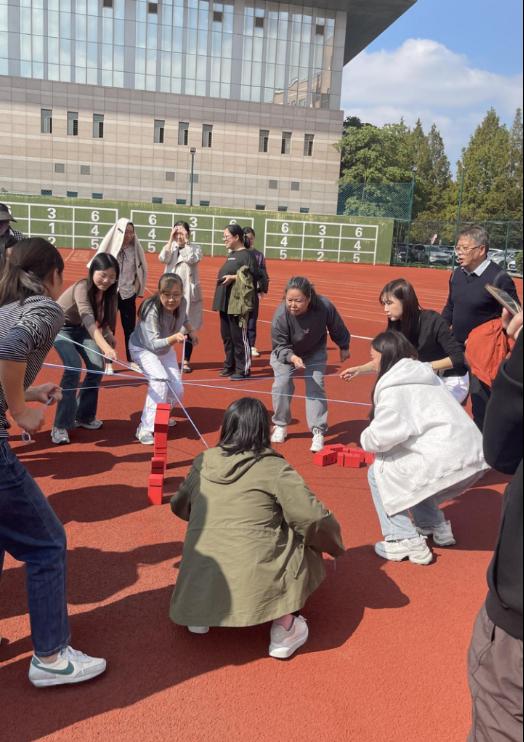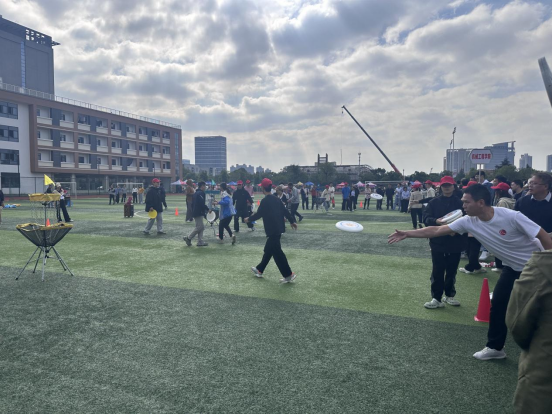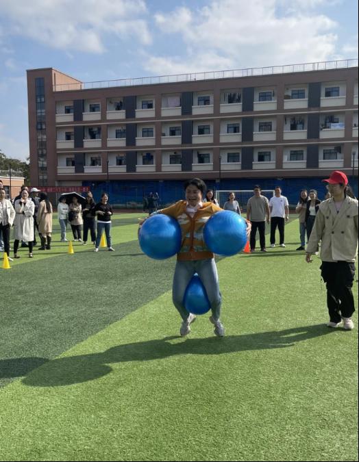操场上人声鼎沸,热闹非凡。运动会共有“企鹅漫步、极限飞盘、合力建塔、袋鼠搬瓜”等4个团体项目的比赛。老师们一改往日安静斯文形象,纷纷化身“运动健将”。“企鹅漫步”中大家夹带三个瑜伽球前进,左右摇摆,宛如企鹅行走,憨态可掬。“极限飞盘”看似简单一掷,实则暗藏玄机,投掷准确率低,堪称全场最难活动,成人影视