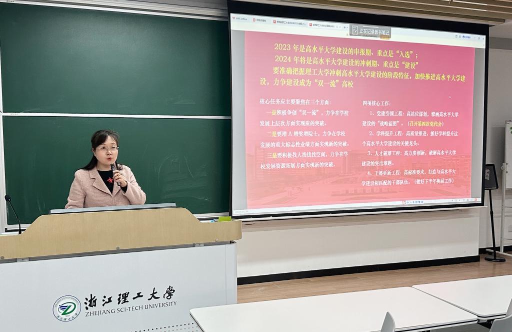 3月13日下午,建筑工程学院在2N119教室举行新学期工作部署会暨全体教职工大会。会议集中学习了全国教育工作会议、浙江省“新春第一会”等会议精神;传达了党委书记赵全军、校长陈文兴在2024年工作部署会的讲话精神和学校第四次党代会动员部署会、全面从严治党工作暨清廉浙理建设推进会相关精神等,号召全院教师激荡奋发向上、锐意进取的信心,奋力完成新一年重点工作任务,推动学院高质量发展迈出新步伐。学院全体教师参加会议。会议由学院党委书记李娜主持。