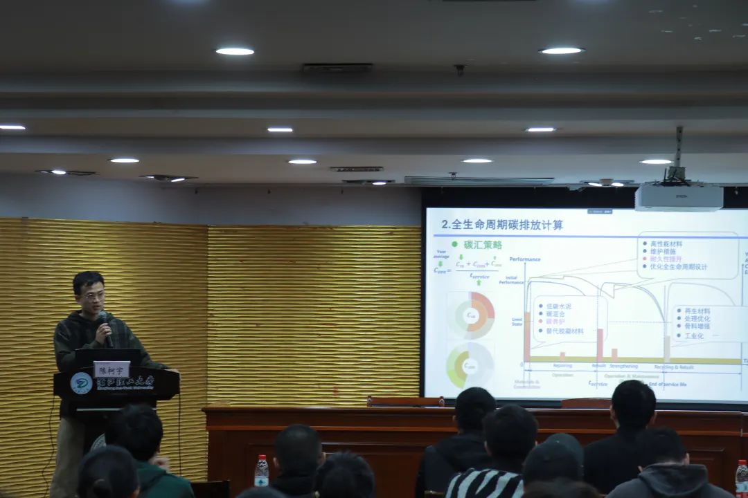 论坛正式开始,来自浙江大学成人影视 的陈柯宇博士做了题为《混凝土低碳技术的浅议与科研绘图技术的提升》的汇报,介绍了关于矿化养护技术的研究课题,分享了实用的制图经验。
