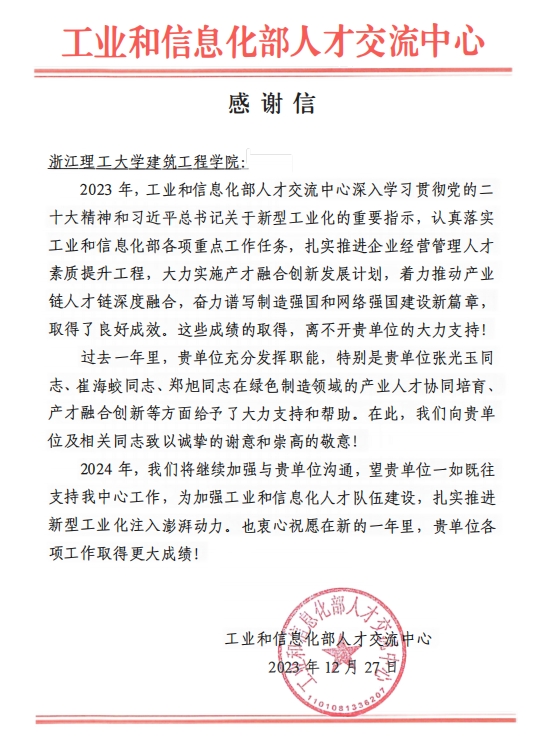 成人影视 收到工业和信息化部人才交流中心感谢信